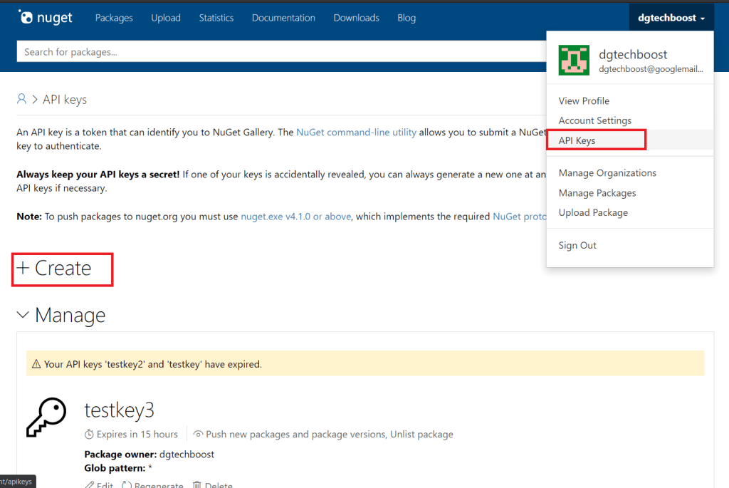 Then we need to run the command which would contain the name of your package file, as it is in the bin/Debug or bin/Release folder, the api key that you generate in your account with Nuget and also the source url.