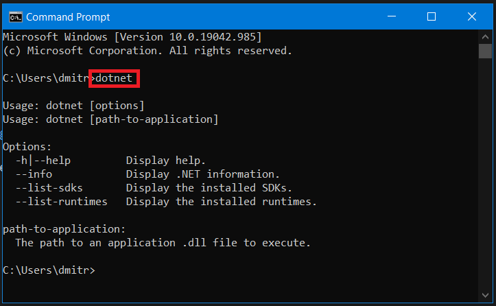 Firstly let’s check if we got net core cli installed. For this we need to open Command Prompt and type in ‘dotnet’ command.