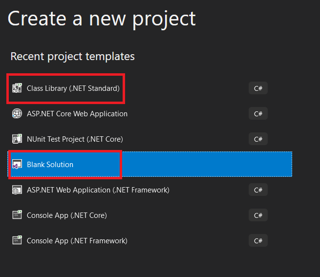 We can start by either creating a Blank Solution and then manually adding a class library or choose a Class Library straight away. For the latter the solution is created automatically. However the name of the class library would be the same as the class library itself.