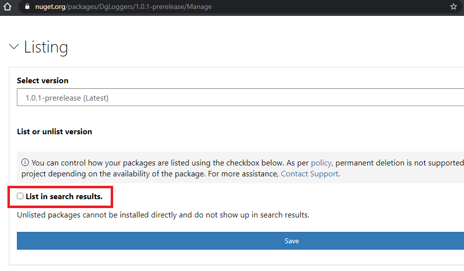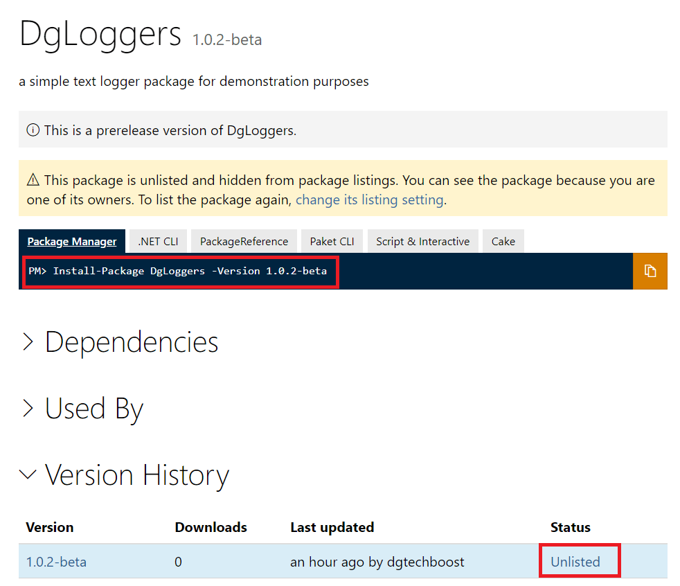 So if you go back to your package on nuget.org it should be set as unlisted.