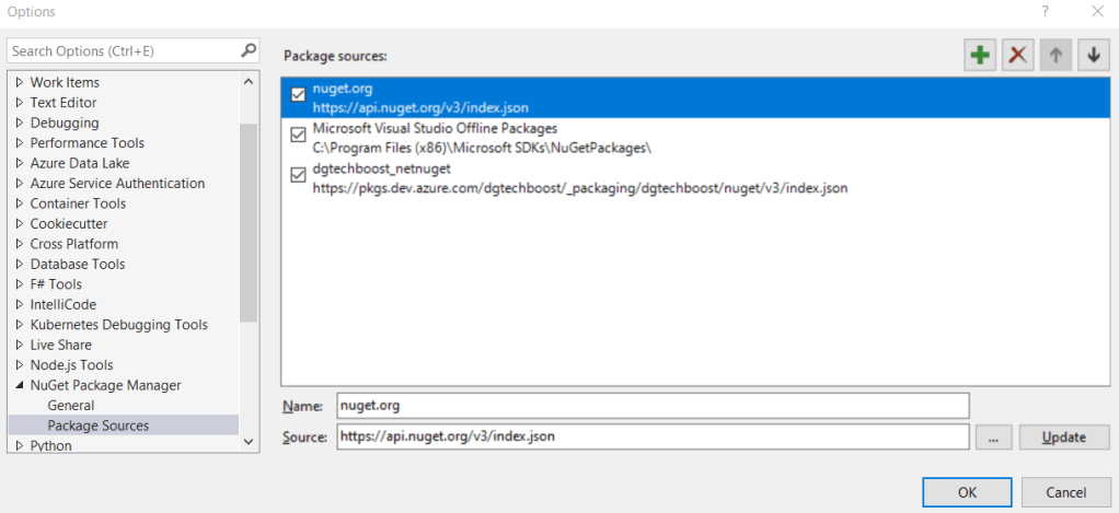 For source we put https://api.nuget.org/v3/index.json because we use Nuget server. The url is the same format with possible version differences.